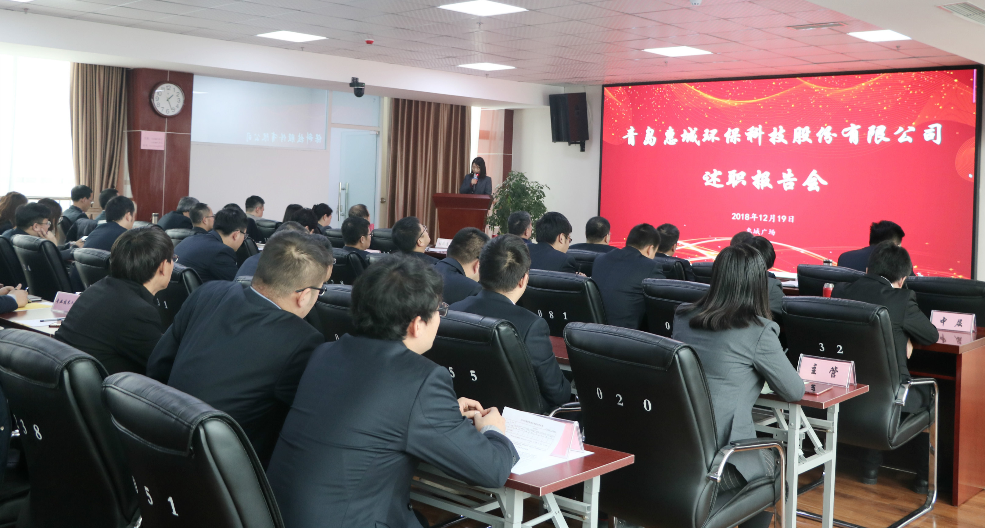 为深入了解干部实绩,切实提高干部素质,打造一支能力出众、引领发展、忠诚企业、爱护员工的干部队伍,2018年12月19日下午,惠城环保2018年度中高层干部述职报告会在研发中心418会议室召开。公司董事长张新功、常务副总经理叶红及其他中高层管理干部、专业技术人员、一般管理人员等100余人参加了此次述职报告会。